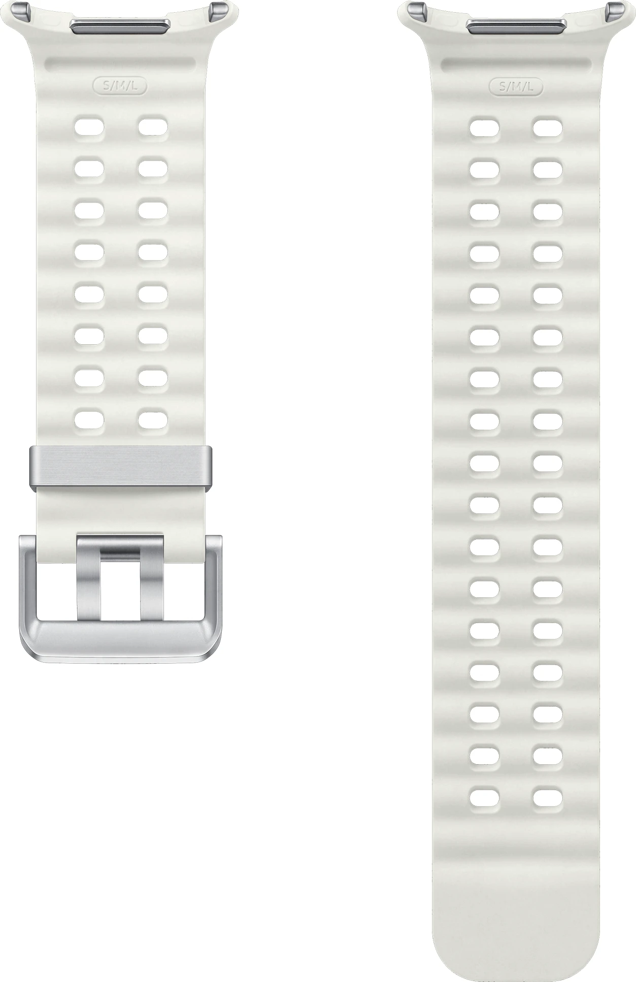 Das Marine Band für die Galaxy Watch Ultra besteht aus speziellem Nitrilkautschuk (HNBR) und eignet sich hervorragend für schweißtreibende Workouts oder im Alltag. Es ist unempfindlich gegenüber Temperaturänderungen, sowie verschleiß- und wasserbeständig. Mit Luftlöchern für zusätzliche Luftzirkulation sorgt das Marine Band für angenehmen Tragekomfort am Handgelenk, damit du Herausforderungen mit Bravour meistern kannst. Durch das Schnellwechselsystem, kannst du innerhalb von Sekunden das Band ohne weitere Hilfsmittel und mit nur einem Knopfdruck wechseln. Wähle ein Armband das zu deinem Stil passt und verleihe deiner Galaxy Watch Ultra einen persönlichen Touch.